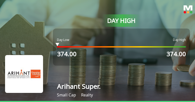 2025-11-27 09:32:09Arihant Superstructures recorded a robust intraday performance on 27 Nov 2025, touching a day’s high of Rs 374, reflecting a 7.24% gain from its previous close. The stock outpaced the broader Realty sector and the Sensex, demonstrating notable trading momentum amid a positive market backdrop.