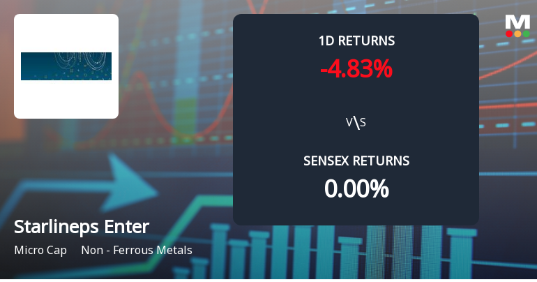 2025-11-26 09:36:46Starlineps Enterprises Ltd, a player in the Non-Ferrous Metals sector, is currently experiencing severe selling pressure, with the stock registering a lower circuit and an absence of buyers. The stock's performance continues to lag significantly behind the broader market, signalling distress selling and heightened investor caution.